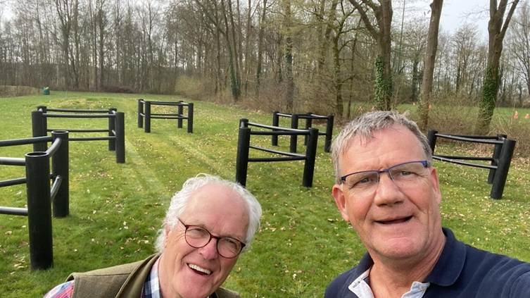 De maandag erna gingen Ton en Henk op pad. Henk heeft ook een mooie hindernis en een fraaie dressuurbaan te leen gegeven. Samen hebben zij deze opgehaald en op het terrein geplaatst. Dit kunnen we mooi gebruiken tijdens de komende activiteiten!