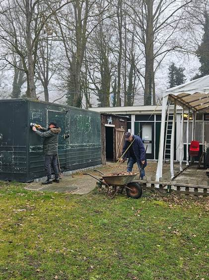 De grote opkomst zorgde ervoor dat op heel veel plaatsen, het clubhuis, de schuur, de container, de windsingel, de bosranden, de oprit, kortom overal gewerkt werd aan het klaarmaken van de accommodatie voor het nieuwe seizoen.